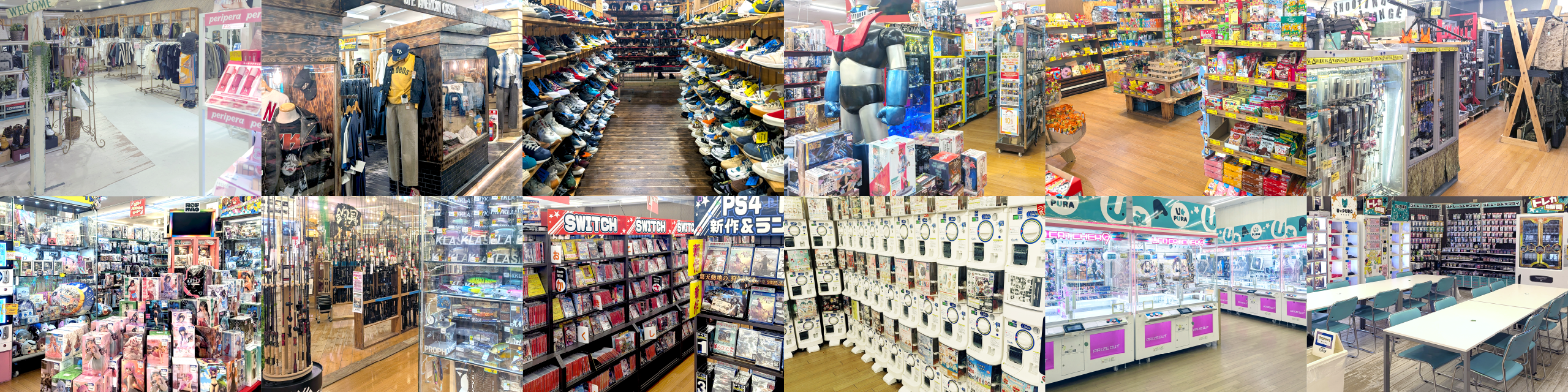 - クレーンゲーム、ガチャガチャ、駄菓子、ゲーム、おもちゃ、トレカ、釣具、スポーツ・アウトドア、楽器、家電、スマートフォン、アパレル、金・プラチナ・金券など