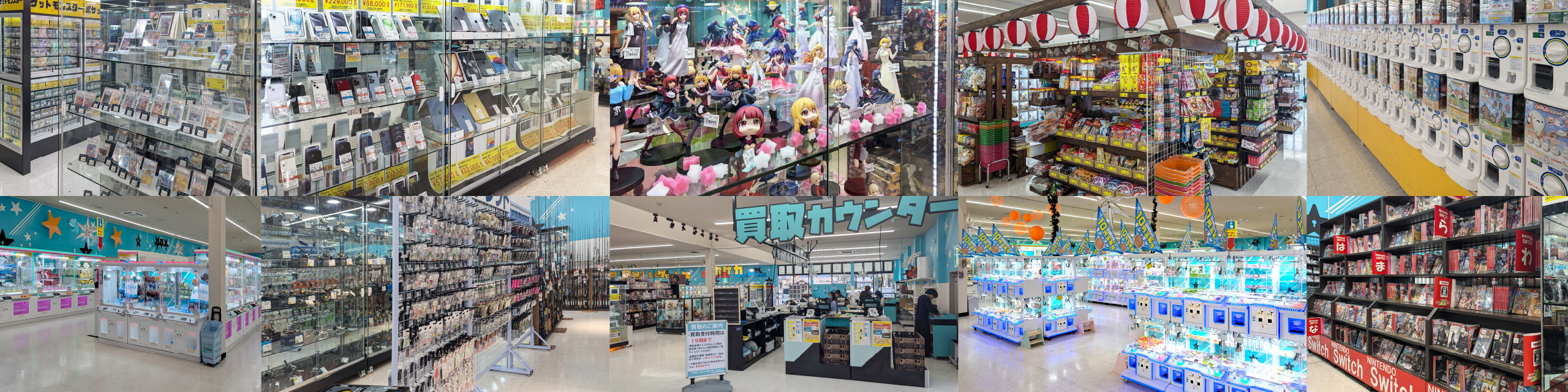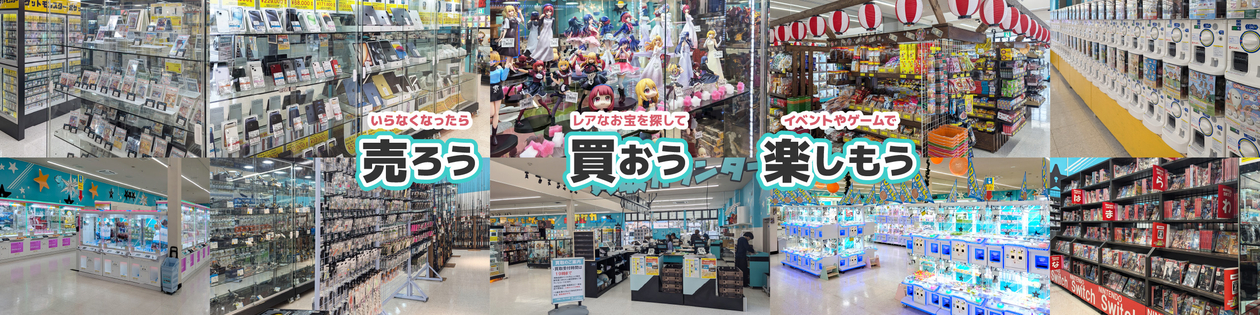 - クレーンゲーム、ガチャガチャ、駄菓子、ゲーム、おもちゃ、トレカ、釣具、カメラなど